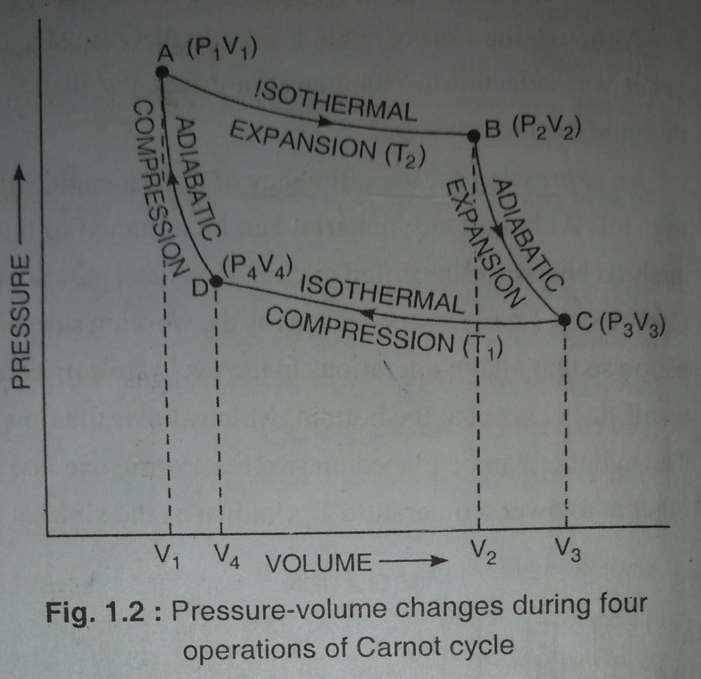 Carnot cycle complete in the following four steps. the value of pressure – volume changes during these steps. as shown in Fig.1.2
